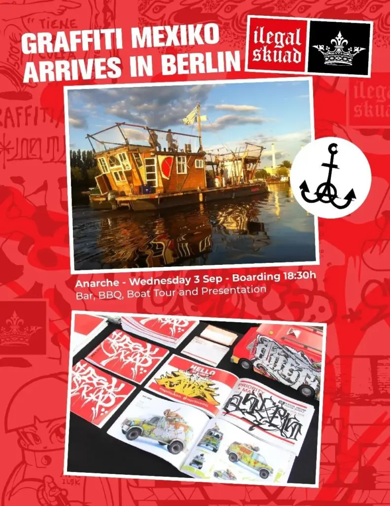 Das Illegal Squad Kollektiv aus Mexiko-Stadt ist erstmals zu Besuch bei Freund*innen in Berlin. Mitgebracht haben sie über 100 Ausgaben ihrer Magazine, Siebdrucke und Original-Tags und Zeichnungen von einem Querschnitt der mexikanischen Writing-Szene.