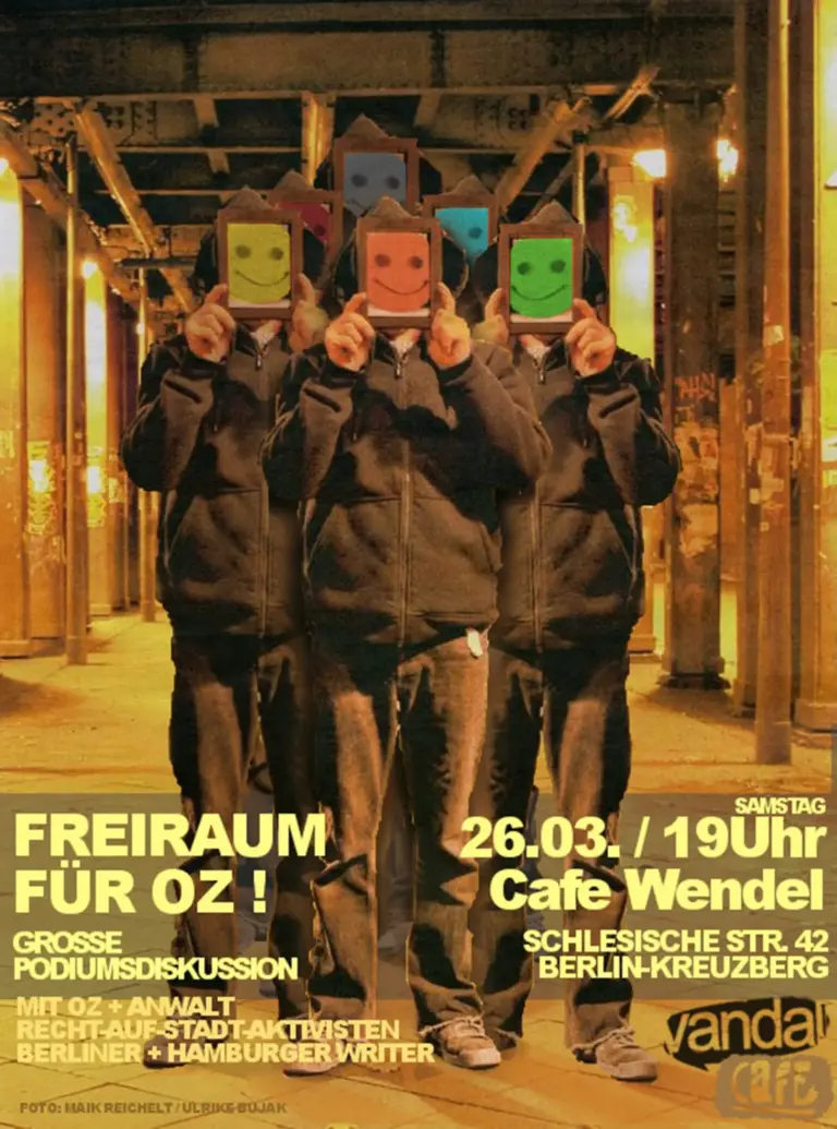 Am Sa., 26.03.11 findet ab 19 Uhr das VandalCafé #4 statt. Diesmal gibt's eine große Podiumsdiskussion mit OZ + Anwalt, Recht-auf-Stadt-Aktivisten, Jürgen Große (urban. art.info) sowie Hamburger und Berliner Writern. Außerdem steht ein großer Soli-Verkauf an, dessen Einnahmen für den Prozess und die Öffentlichkeitsarbeit von OZ verwendet werden. Sind wir…
