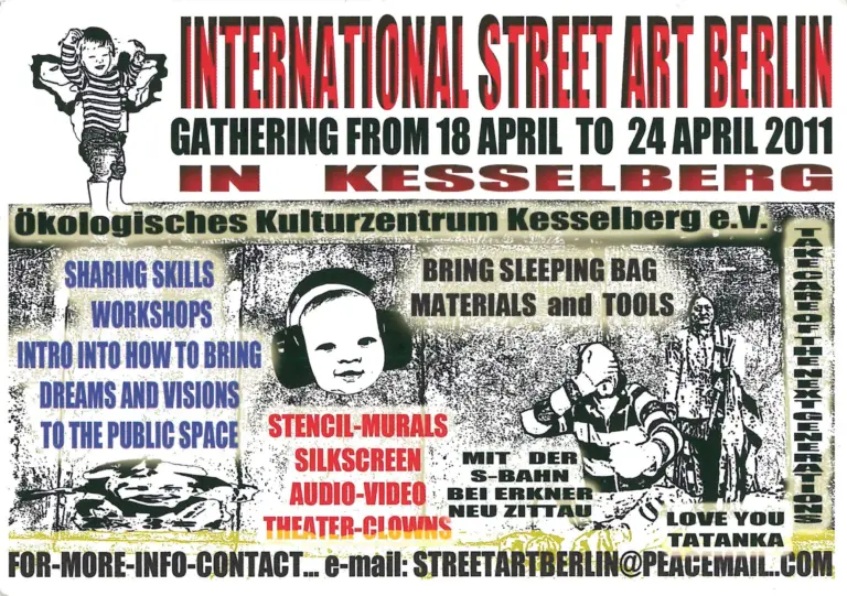 SHARING SKILLSWORKSHOPSINTRO INTO HOW TO BRING DREAMS AND VISIONS TO THE PUBLIC SPACESTENCIL-MURALS SILKSCREENAUDIO-VIDEOTHEATER-CLOWNSBRING SLEEPING BAG, MATERIALS and TOOLS!Ökologisches Kulturzentrum Kesselberg e.VNeu-Zittau