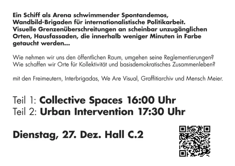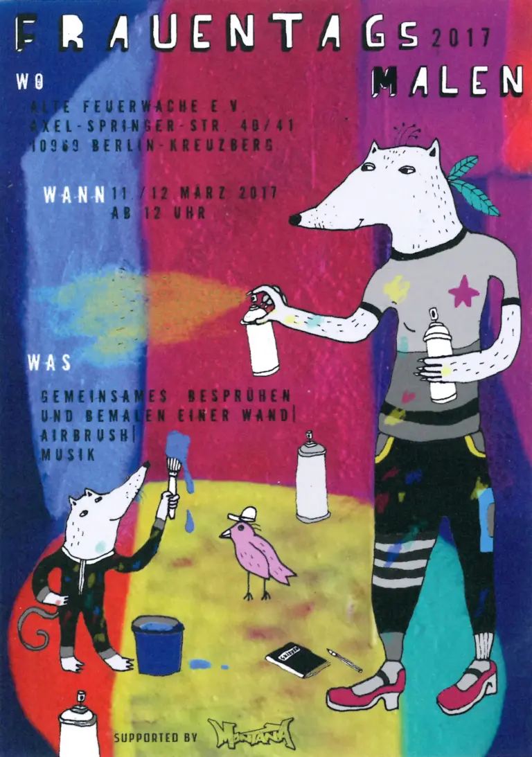 Sa, 13.09. Workshop: Graffiti and intervention. We want to break with the gatekeeping mentality and create a counterpart to the patriarchal graffiti world. Feminist alliance and collective action practice is our basis.