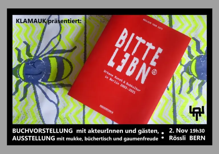 "Bitte Lebn - Urbane Kunst und Subkultur in Berlin"Unter dem Label Reclaim Your City (RYC) finden sich seit fast 2 Jahrzehnten Künstler*innen und Gruppen zu kollektiv organisierten Ausstellungen, Wandmalaktionen, Kongressen und temporären Besetzungen zusammen. Ein Fotovortrag über utopische Strukturen im urbanen Raum, die Grenzen künstlerischer Aktionsformen und den Austausch mit…