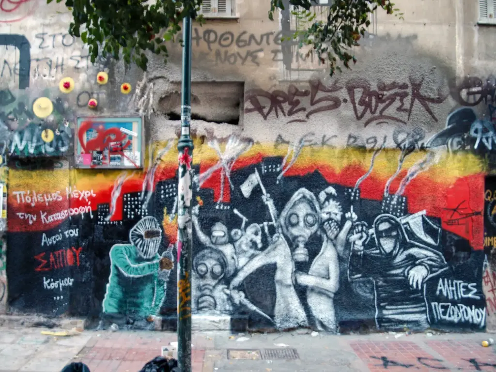 Der Tod von Alexis löste in ganz Griechenland Revolten aus, die von zahlreichen Writerinnen und Künstlerinnen mit Malaktionen begleitet wurden. Viele von ihnen wurden dadurch zu einem Teil der aufständischen linken und anarchistischen Bewegung. Gleichzeitig ist es wichtig, hervorzuheben, dass viele dieser Writerinnen bzw. Gruppen wie die 381 Crew oder NDA aus Athen, Thessaloniki und anderen Städten bereits von Writerinnen und Gruppen der vorangegangenen Generationen beeinflusst wurden, z. B. von der 114 Crew, die für ihre politischen, abstrakten und experimentellen Aktivitäten mit und jenseits von Graffiti während der 1990er-Jahre bekannt war.
