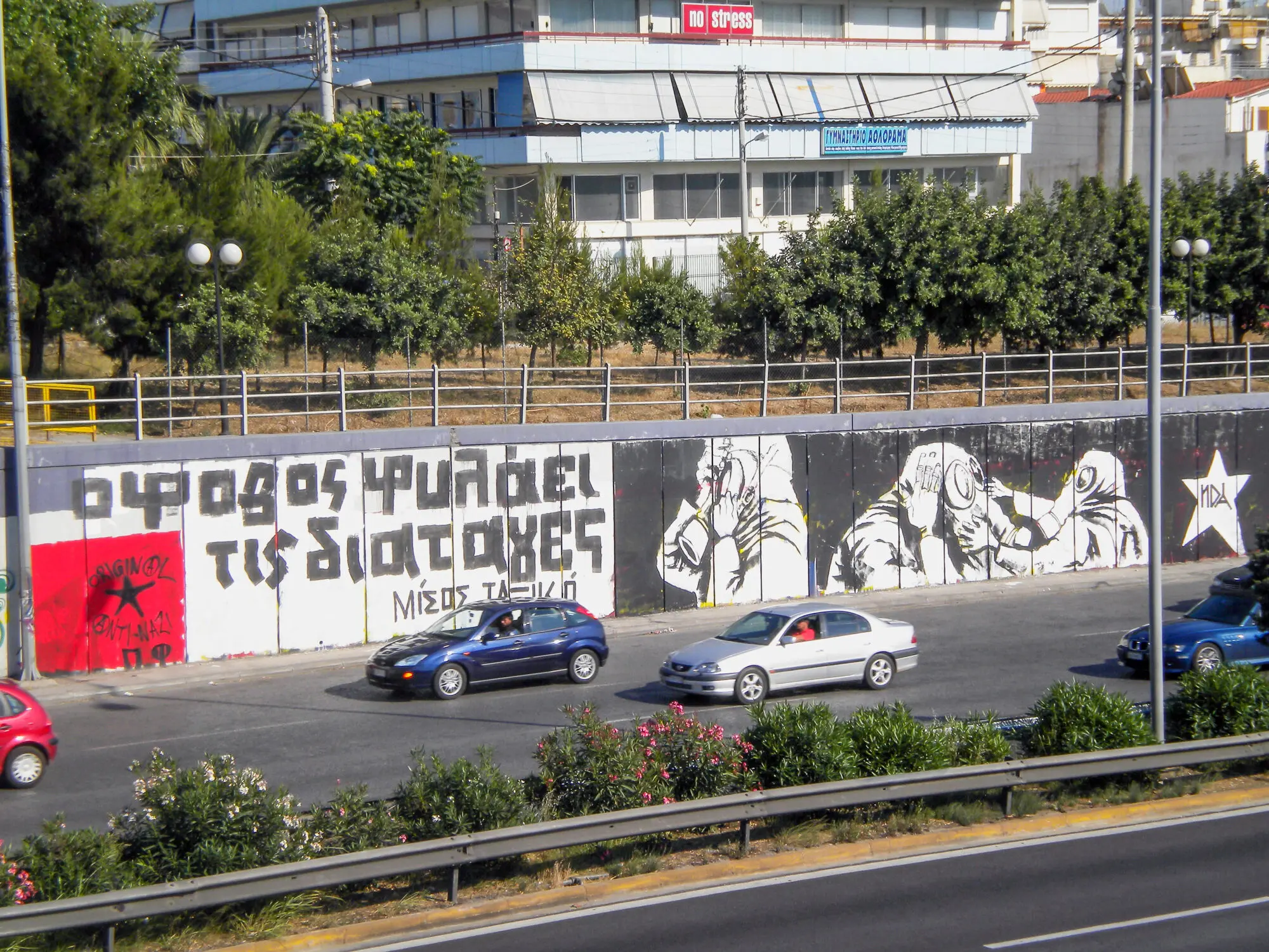 Seit dem 6. Dezember 2008, dem Tag der Ermordung des 15-jährigen Alexis Grigoropoulos durch die Polizei, nahmen die Graffiti nicht nur an den Wänden des alternativen Stadtteils Exarchia explosionsartig zu. Da die Mauern in Athen so gut wie nie gereinigt werden, stellen sie nicht nur eine Momentaufnahme dar, sondern auch eine Art visuelles Archiv der sozialen Konflikte der letzten Jahre.