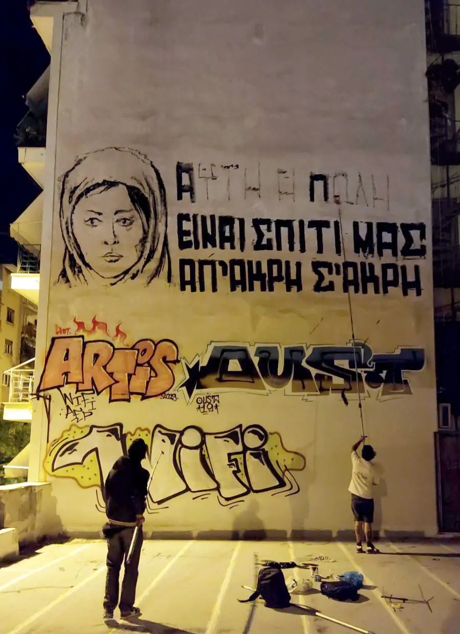 Der Tod von Alexis löste in ganz Griechenland Revolten aus, die von zahlreichen Writerinnen und Künstlerinnen mit Malaktionen begleitet wurden. Viele von ihnen wurden dadurch zu einem Teil der aufständischen linken und anarchistischen Bewegung. Gleichzeitig ist es wichtig, hervorzuheben, dass viele dieser Writerinnen bzw. Gruppen wie die 381 Crew oder NDA aus Athen, Thessaloniki und anderen Städten bereits von Writerinnen und Gruppen der vorangegangenen Generationen beeinflusst wurden, z. B. von der 114 Crew, die für ihre politischen, abstrakten und experimentellen Aktivitäten mit und jenseits von Graffiti während der 1990er-Jahre bekannt war.