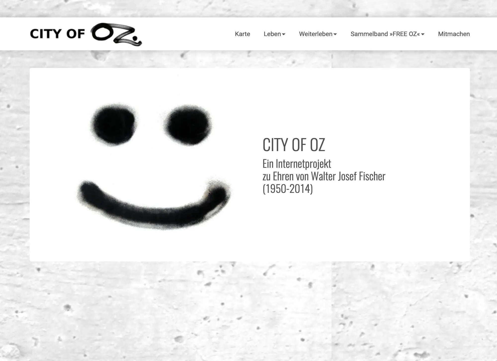 »OZ hat uns die Stadt vererbt«. Das stand auf einem Banner bei der Beerdigung von Walter Fischer im September 2014. Damals entstand die Idee, das Werk von OZ in Hamburg zu dokumentieren – und zwar an dieser Stelle, im Internet, auf einem Stadtplan, auf »CITY OF OZ«. Jeder, der mag, so unser Plan, wird Fotos von Walters Zeichen und Gemälden machen und hier hochladen können, worauf diese auf dem Stadtplan verzeichnet werden. Das Ergebnis, verfeinert mit historischen Fotos: ein wachsendes Abbild von OZ‘ Schaffen, das erste überhaupt in dieser Größe und Auflösung, all City.