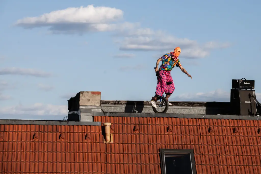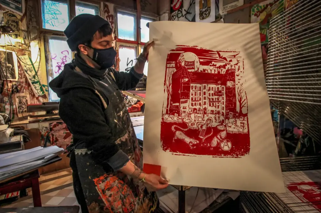 Auf der Seitenwand der Køpi entstand im April 2021 in Zusammenarbeit von Künstler*innen mit dem Wagenplatz und mit der Hausgemeinschaft der Køpi ein neues Fassadenbild.