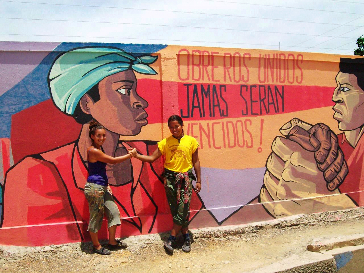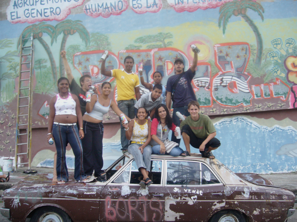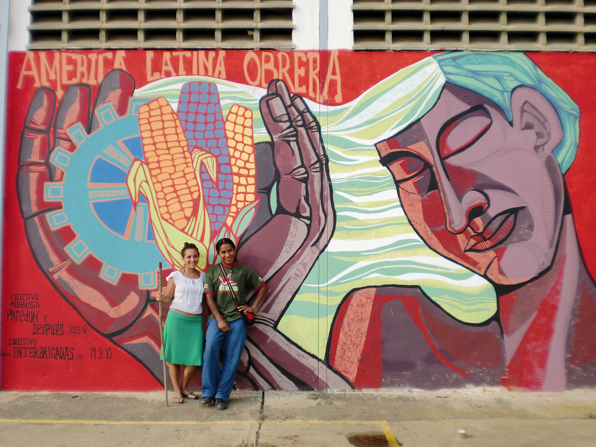 Die Gruppe Interbrigadas steht in ständigem Austausch mit politischen Wandmalerinnen in Lateinamerika und Berlin. Mitte der 2000er unternahmen sie mehrere Brigade-Reisen nach Venezuela, das sozialistisch regiert und Hoffnungsträger vieler Linker war. Mehrere Wandbilder entstanden im Jahr 2009 bei einem Graffiti-Workshop im Barrio 70 in Caracas, wo sie zwei Jahre lang intensiv mit dem Nachbarschaftsrat zusammengearbeitet haben und bis heute Freundschaften mit den Bewohnerinnen pflegen. Das Barrio 70 ist eine in den 1970er-Jahren informell entstandene Wohnsiedlung von marginalisierten Menschen. Wie viele andere Barrios hat das Quartier von den Sozialprogrammen der Regierung unter Hugo Chávez profitiert. Caracas besteht zu 40 Prozent aus Barrios, d. h. Backstein- und Wellblechhütten auf Berghügeln. Ein anderes Wandbild ist an einer Grundschule in Rio Tocuyo im Bundesstaat Lara gemalt worden. Ein Grundschullehrer hatte die Interbrigadas eingeladen.
