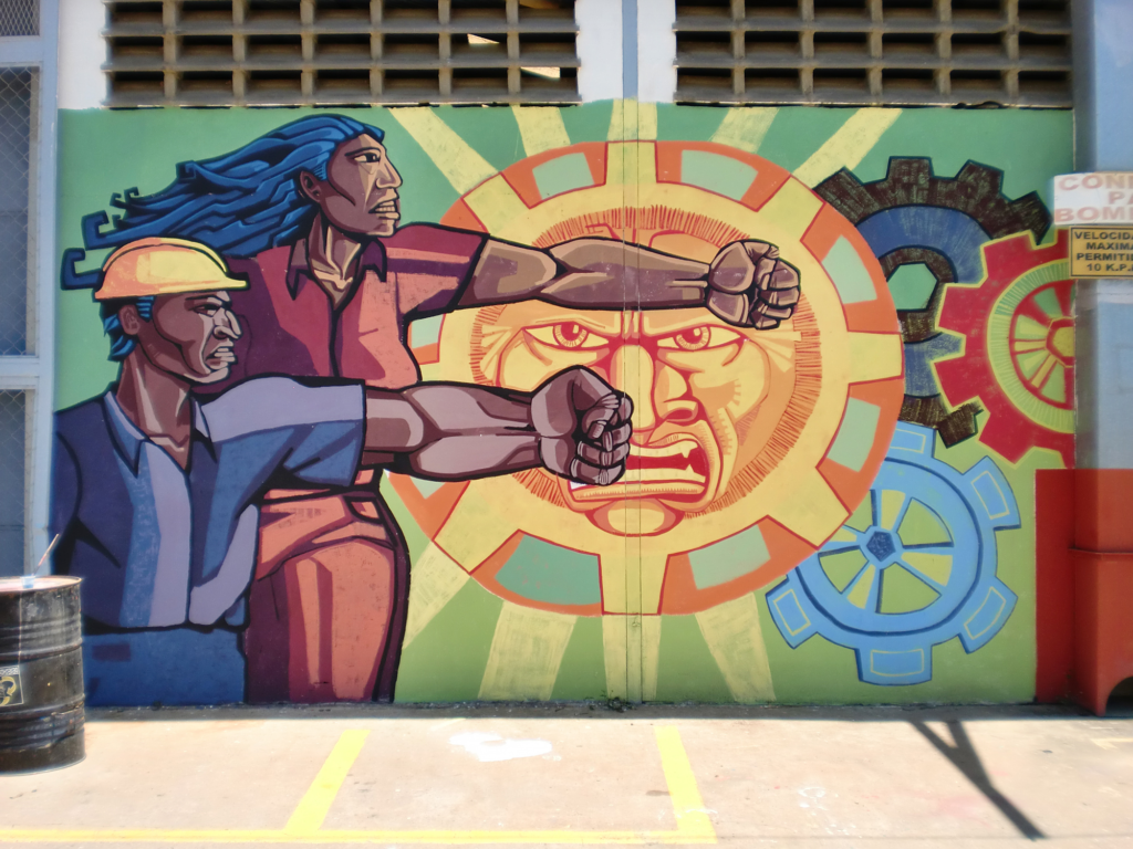 Einige der Wandbilder wurden zusammen mit Sergio Kondori (aka Kondor Vuela) und Valeria Orfino aus Argentinien gemalt, die von den Interbrigadas zwischen 2008 und 2013 regelmäßig nach Bolivien, Venezuela und Deutschland eingeladen wurden. Ein Beispiel ist das Mural für eine besetzte Fischfabrik in Cumaná/Venezuela. Es wurde in Zusammenarbeit mit den Arbeiter*innen entworfen.