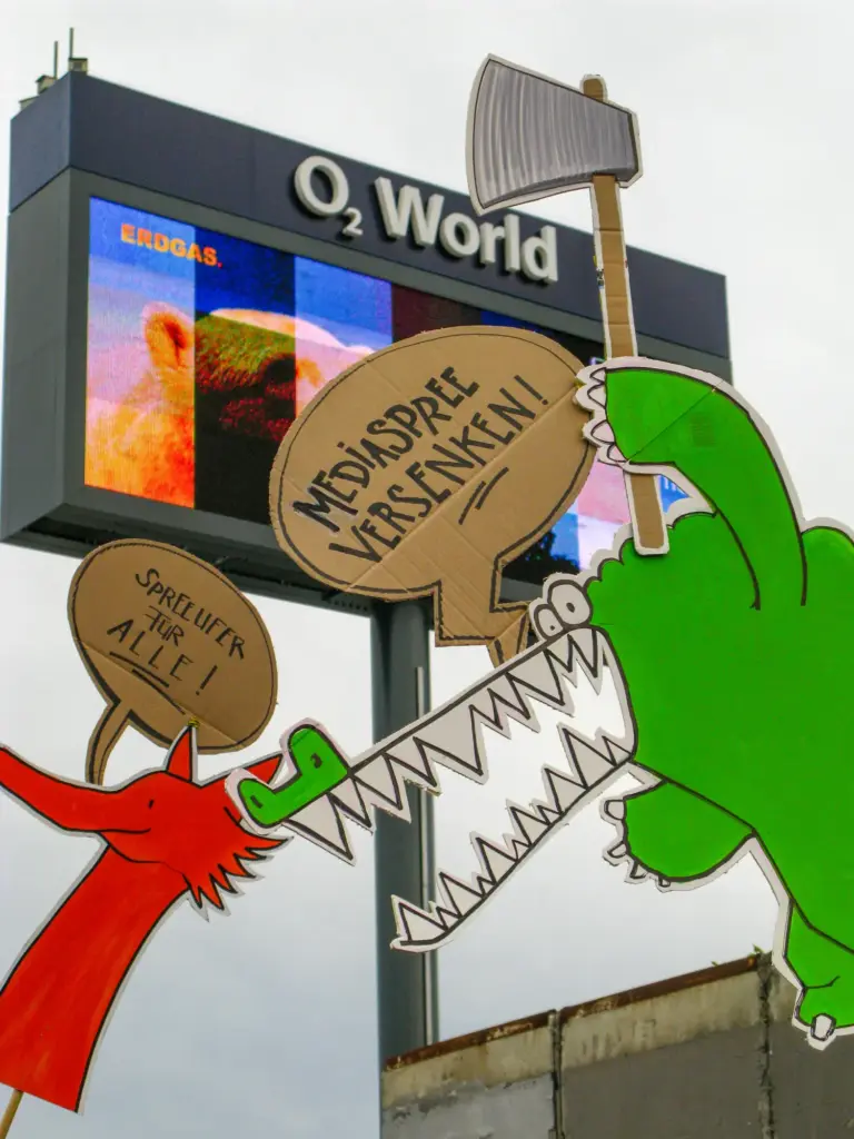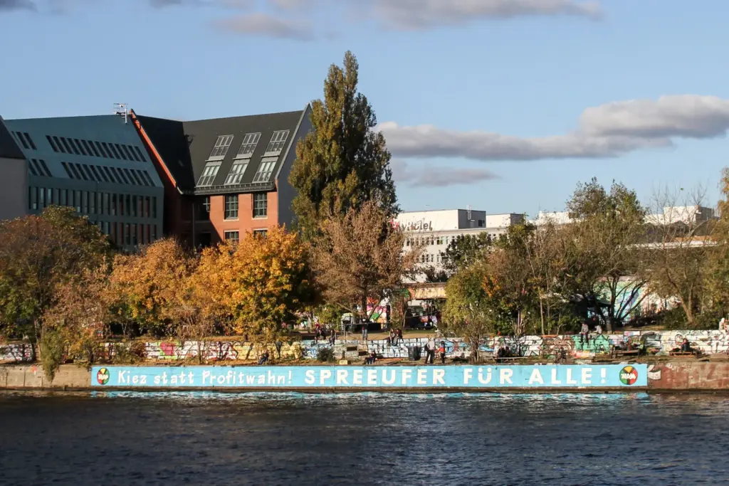 Aktionen gegen die Privatisierung des Spreeufers in Berlin Kreuzberg-Friedrichshain. Video-Clips und Banner vom Pappsatt Kollektiv.