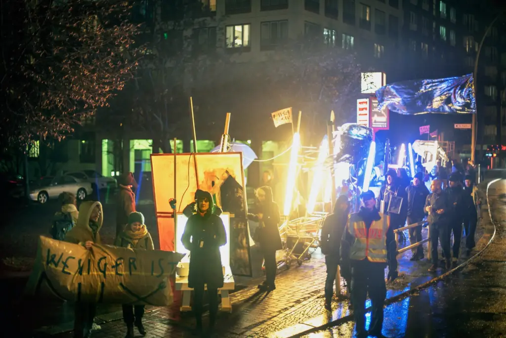 Eine geplante Gruppen-Ausstellung in einem zwischengenutzen Raum in Berlin-Schöneberg. Wegen kurzfristig verschlossener Türen durch den Pächter gab es stattdessen eine spontane Kunstparade entlang der Kurfürstenstraße.
