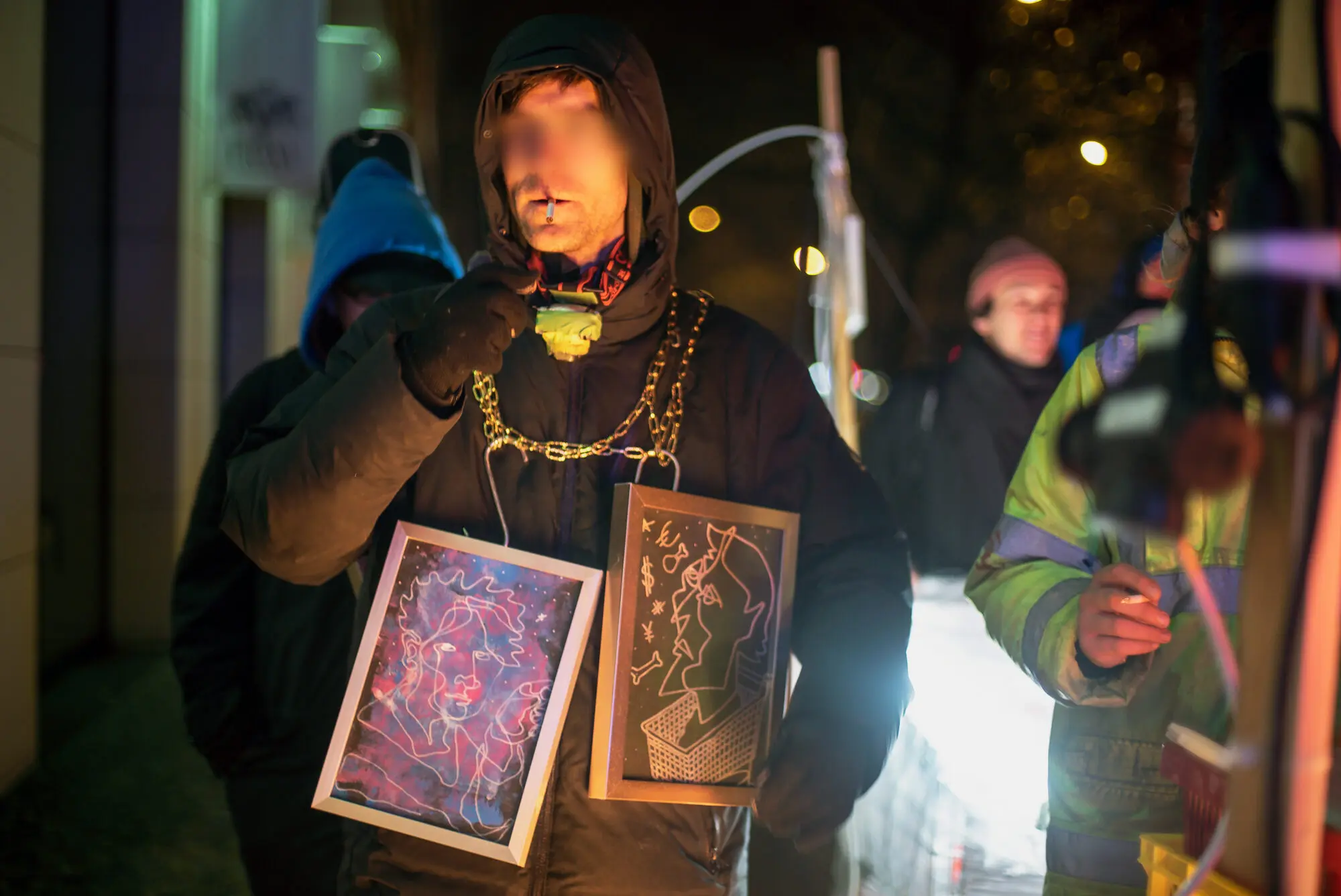 Eine geplante Gruppen-Ausstellung in einem zwischengenutzen Raum in Berlin-Schöneberg. Wegen kurzfristig verschlossener Türen durch den Pächter gab es stattdessen eine spontane Kunstparade entlang der Kurfürstenstraße.