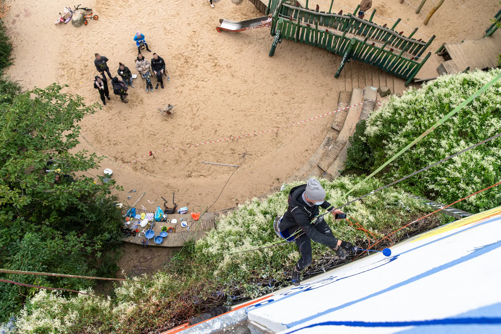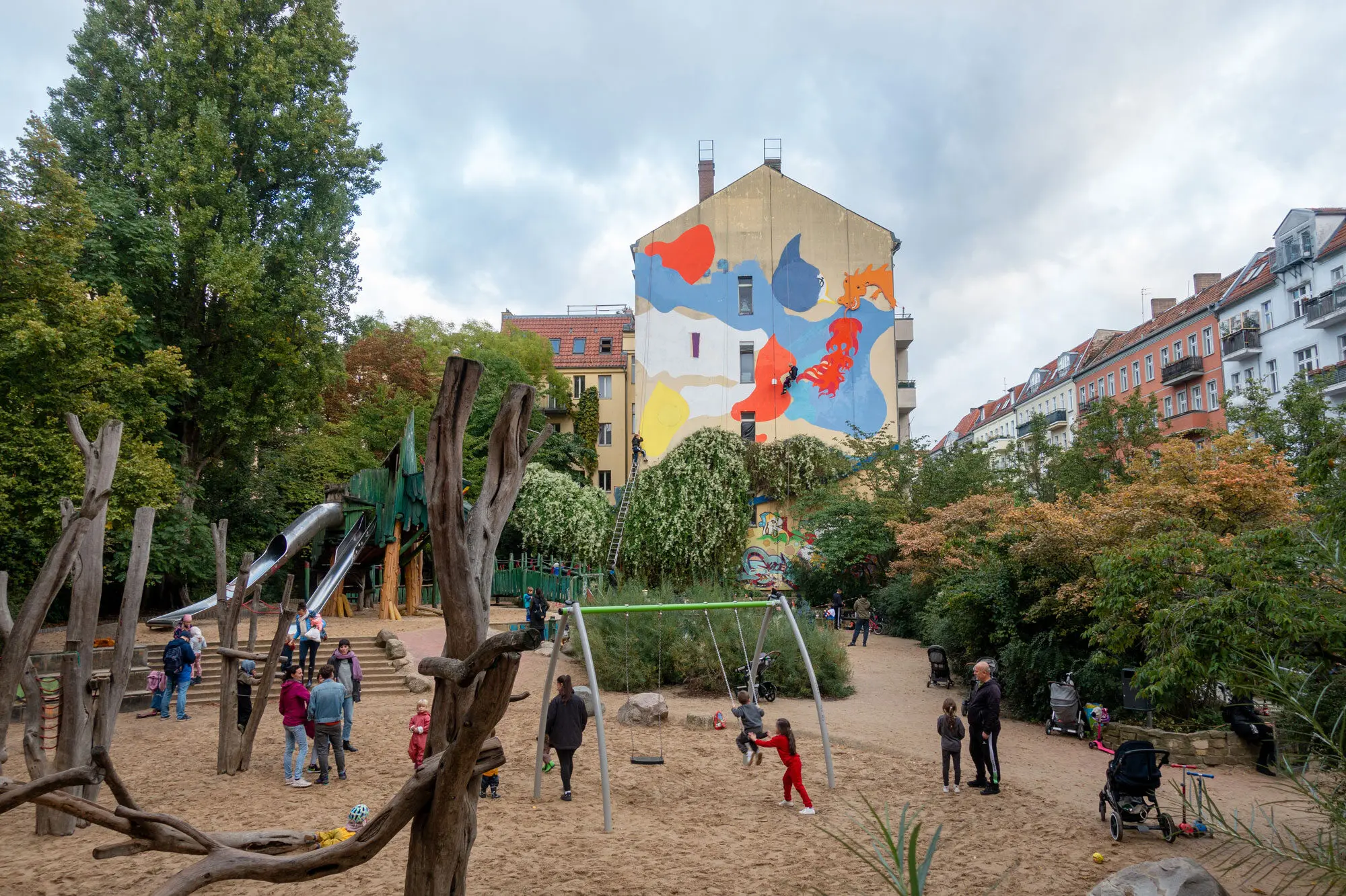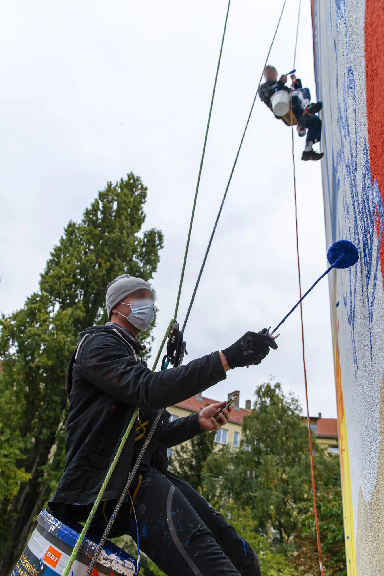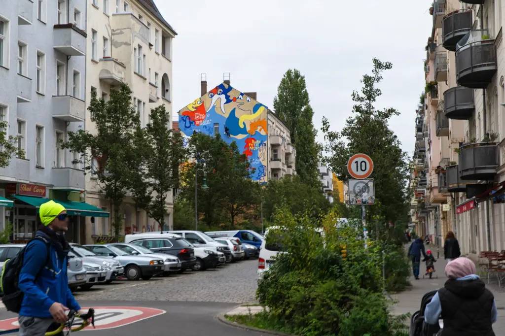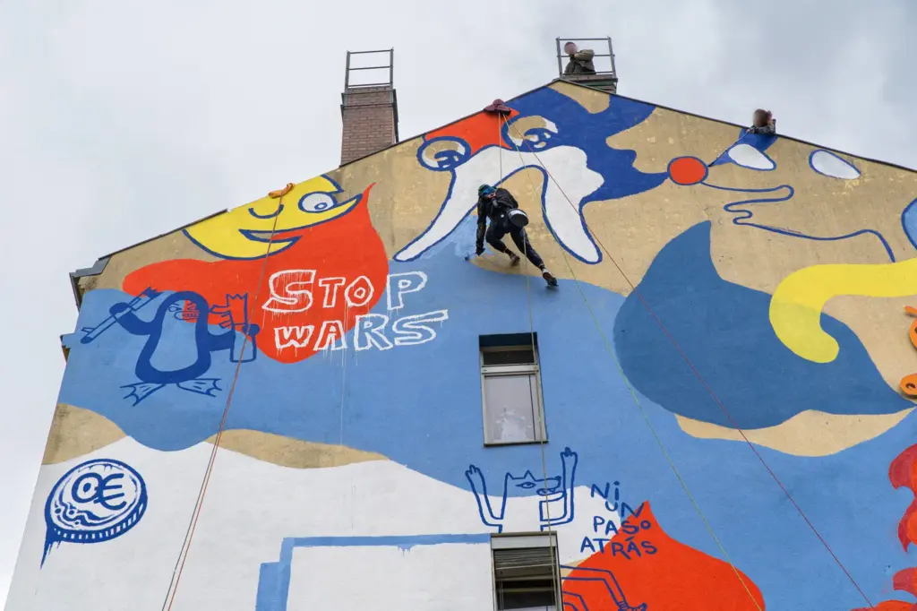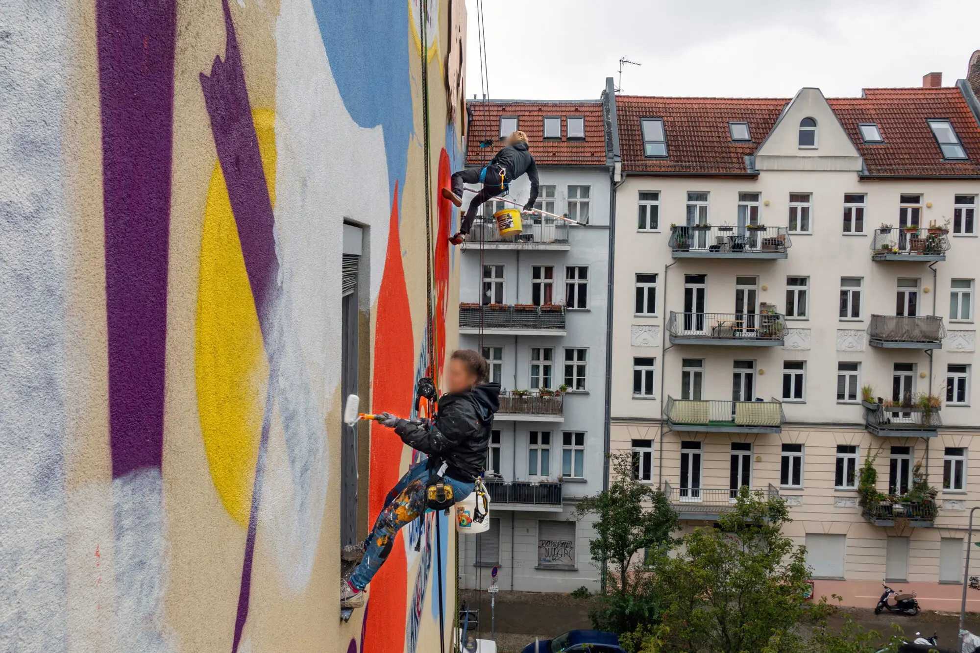 Der 35. Jahrestag der Hausbesetzung in der Schreinerstraße 47 in Berlin-Friedrichshain war Anlass für Künstlerinnen gemeinsam mit der Hausgemeinschaft deren Fassade neu zu gestalten. Die zentralen Inhalte und Bild-Motive haben die Bewohnerinnen entschieden. An diesem Wochenende feiern die Bewohner*innen ihren Hausgeburtstag.