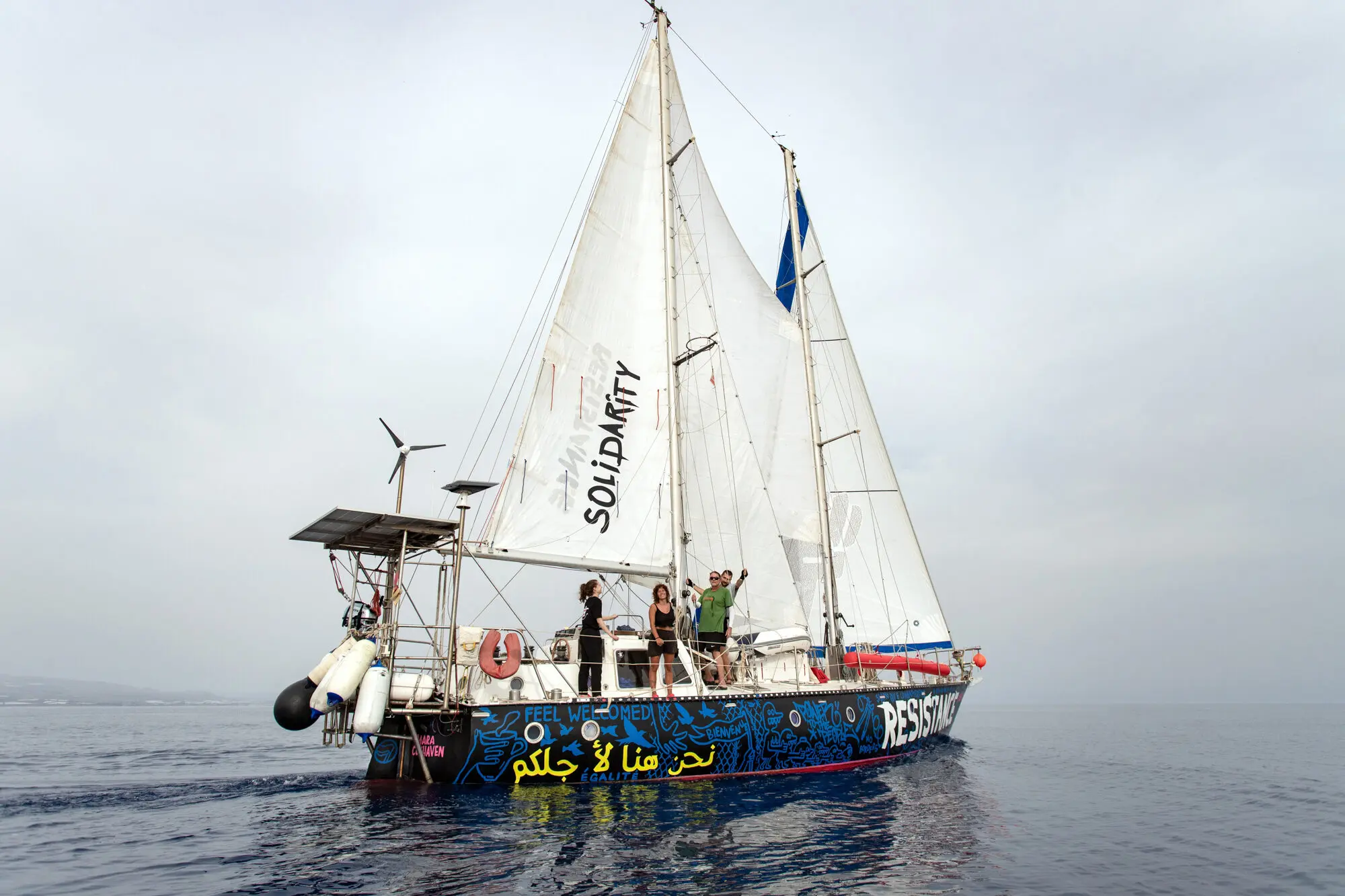 In einem gemeinsamen Austausch über etwa ein Jahr entwickelten die Künster*innen mit der Boots-Crew ein Gestaltungskonzept, überlegten zentrale Motive und Sprüche. Das Boot soll für Geflüchtete in Seenot schon von weitem klar als solidarische Hilfe erkennbar sein u.a. durch große gelb leuchtende Aufschriften in arabischer Sprache („Wir sind für euch da“). Die zentralen großen Aufschriften sind „Solidarity“ und „Resistance“, eine Anspielung auf die Abkürzung SAR (Search And Rescue). Auf das vordere Segel wurde eine geballte Faust gedruckt, die aus mehr als 2000 Namen von Menschen zusammengesetzt ist, die wegen der Abschottungs-Politik der EU ihr Leben verloren haben.