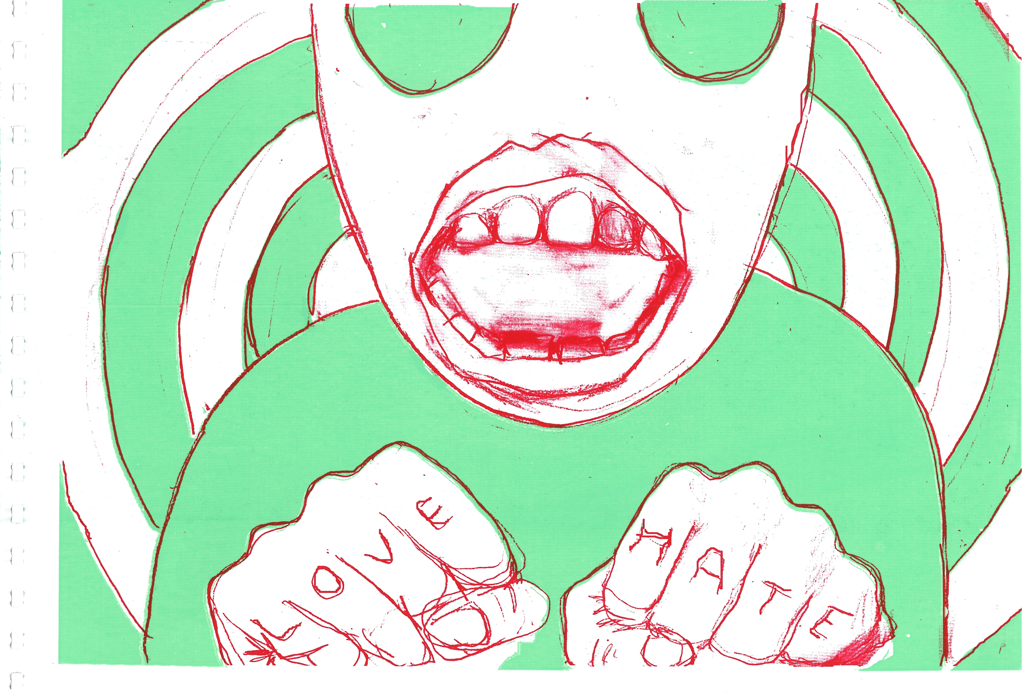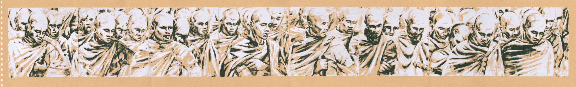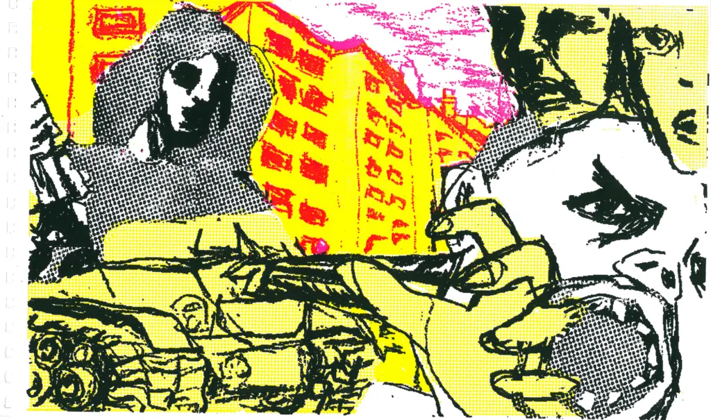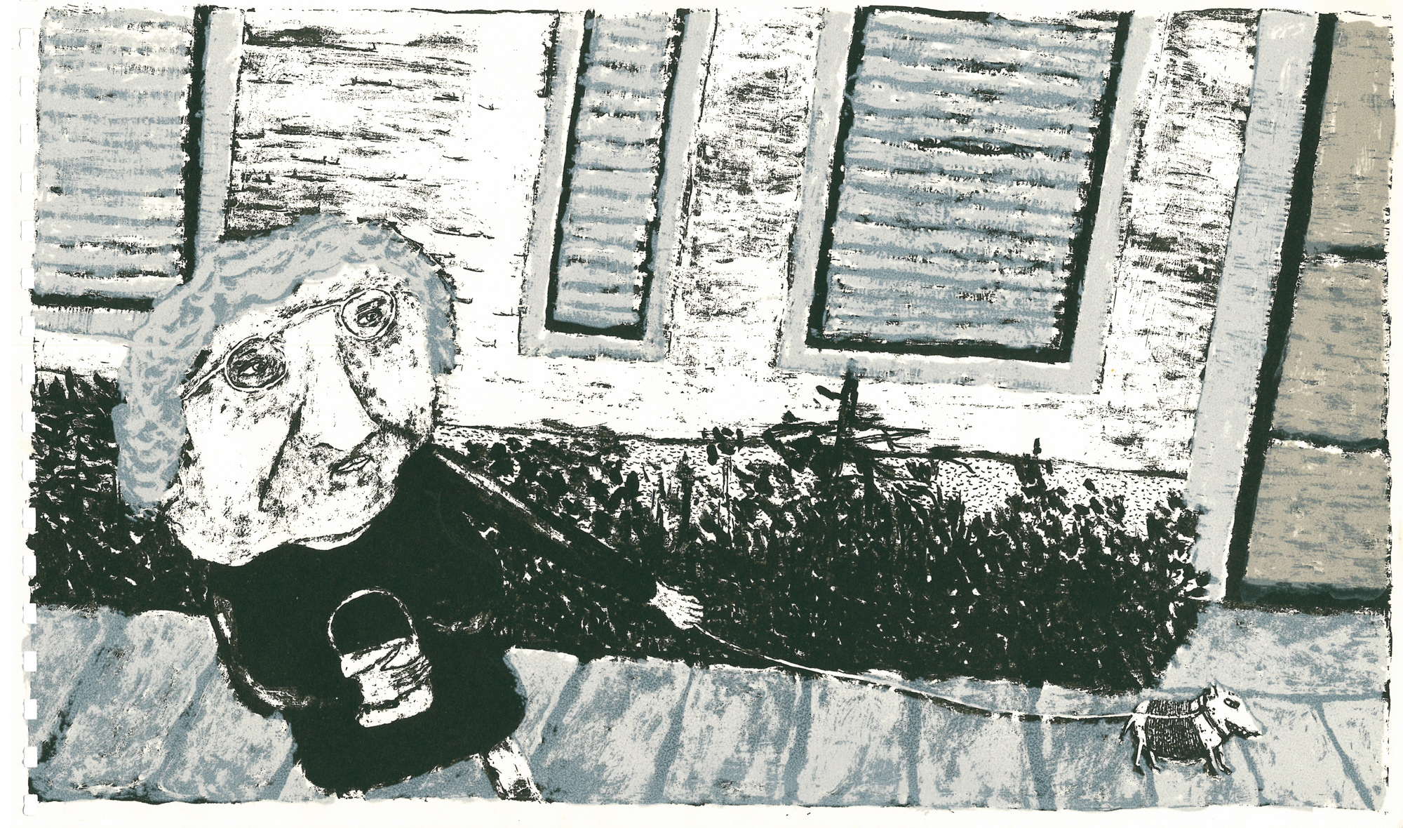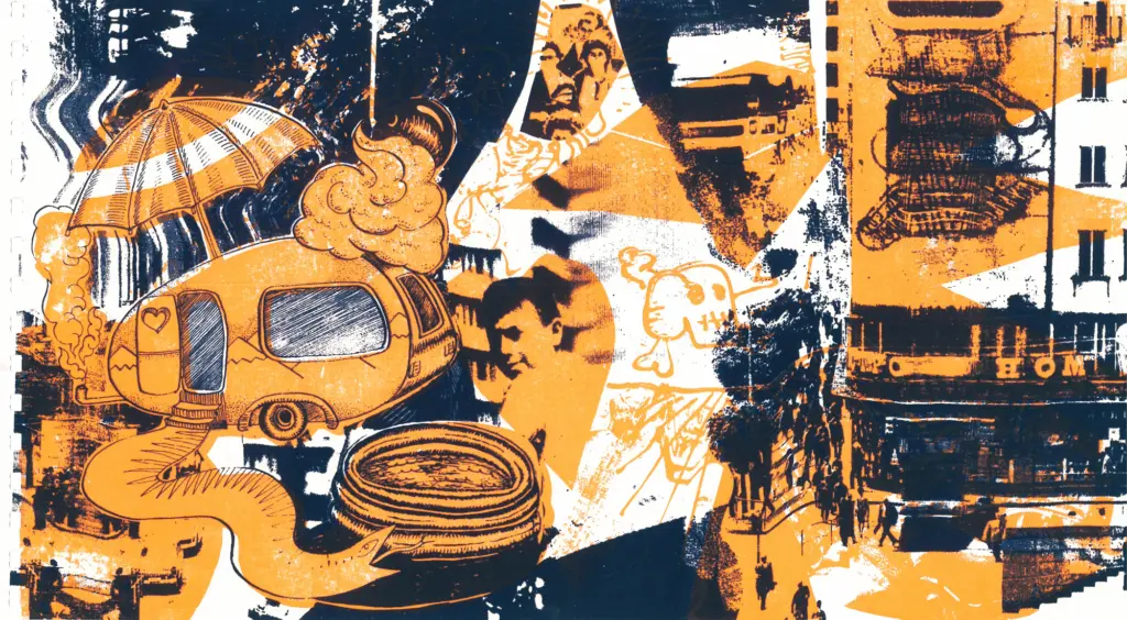 71 Siebdrucke von Künstler*innen aus dem Umfeld der Czentrifuga. Die Seiten wurden individuell in den verschiedenen Werkstätten gedruckt, auf unterschiedlichem Papier und schließlich mit Ringbindung als Buch zusammengebunden.