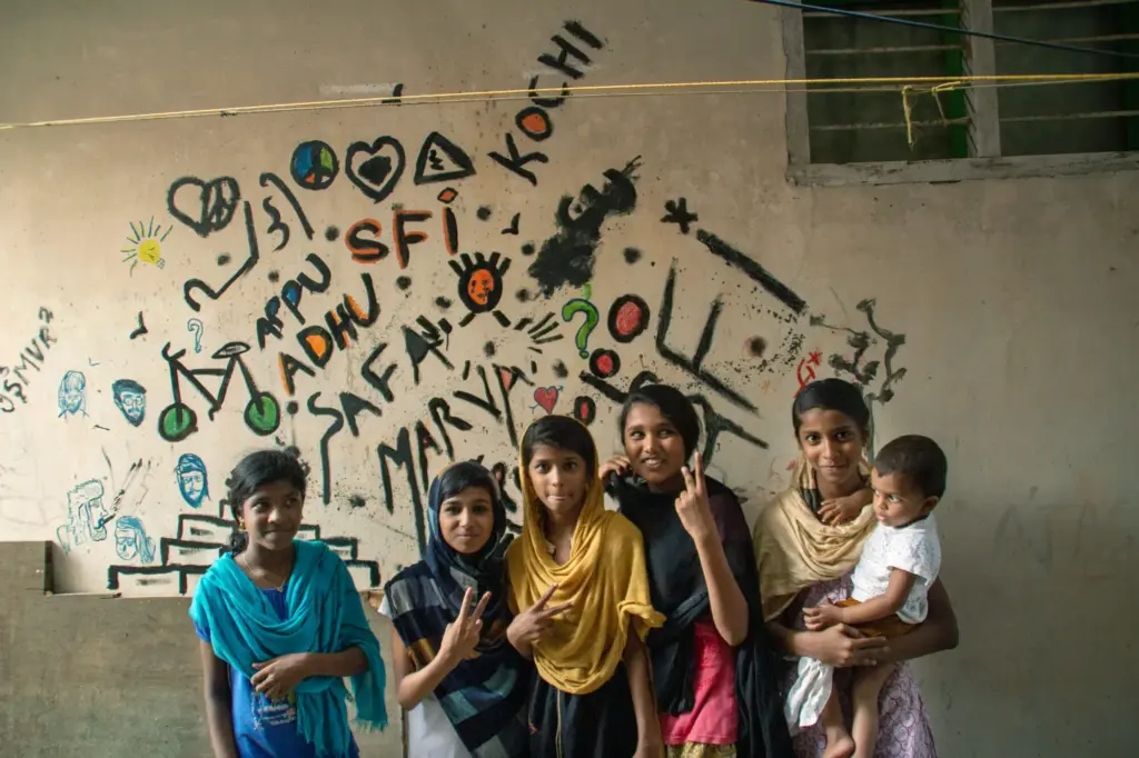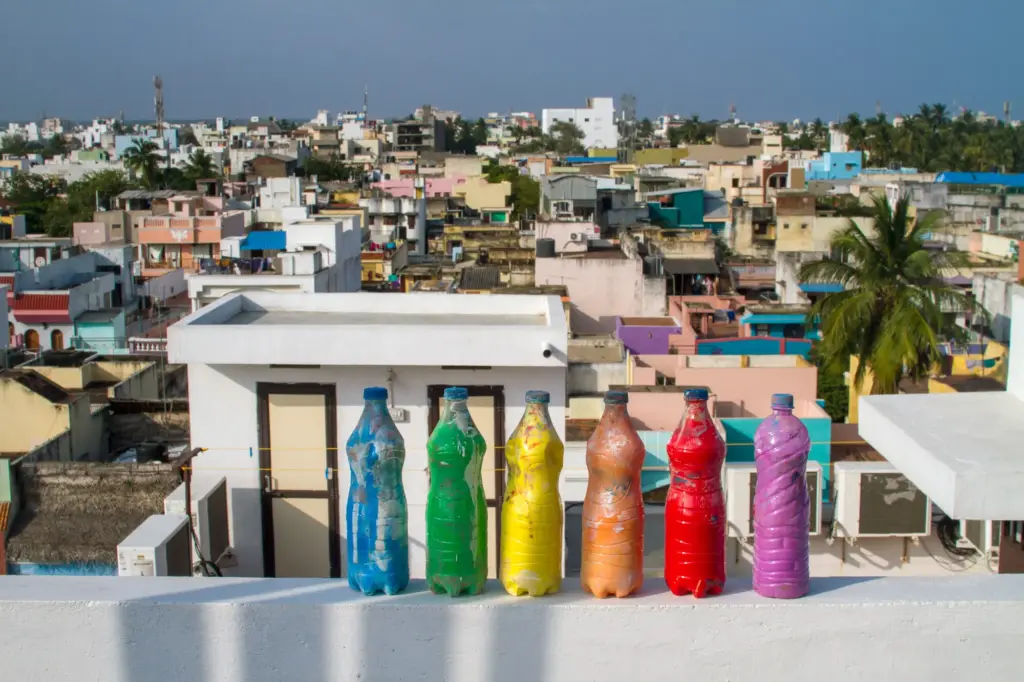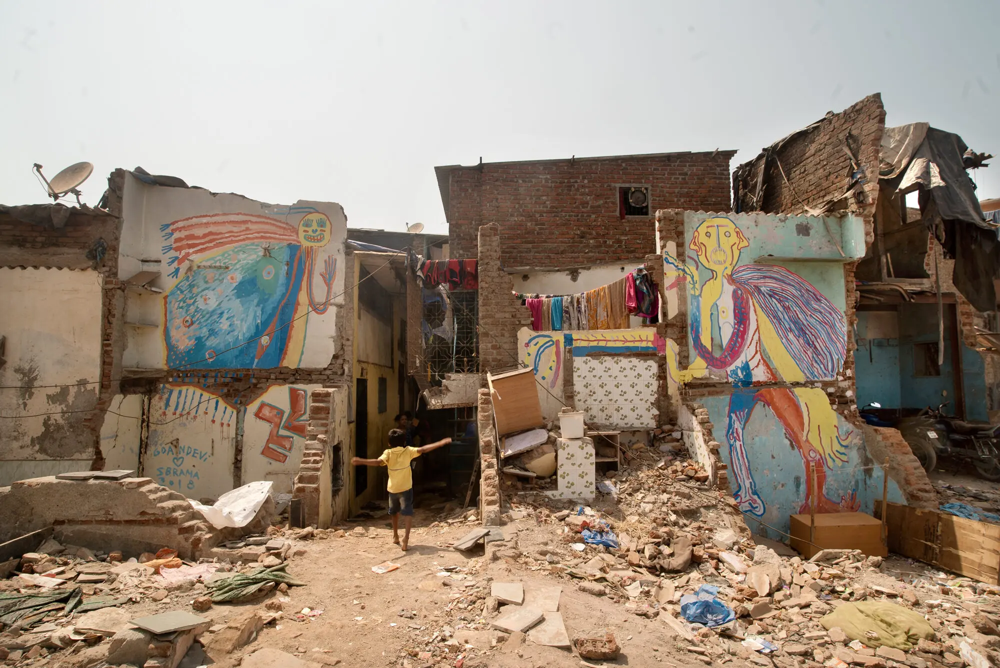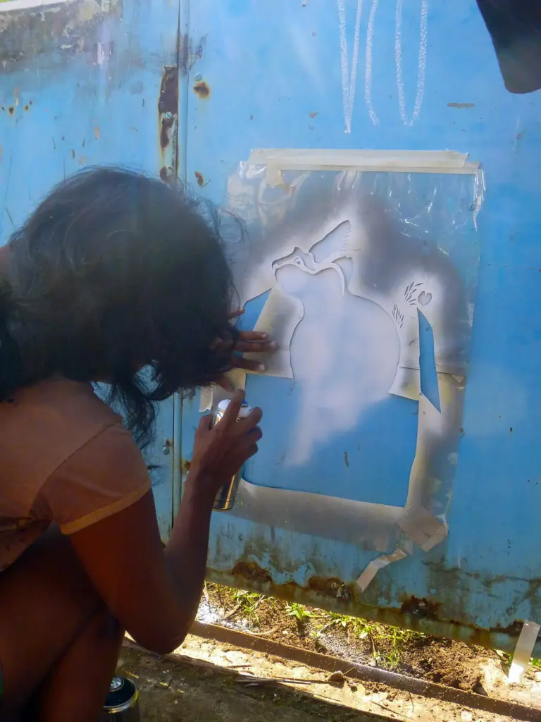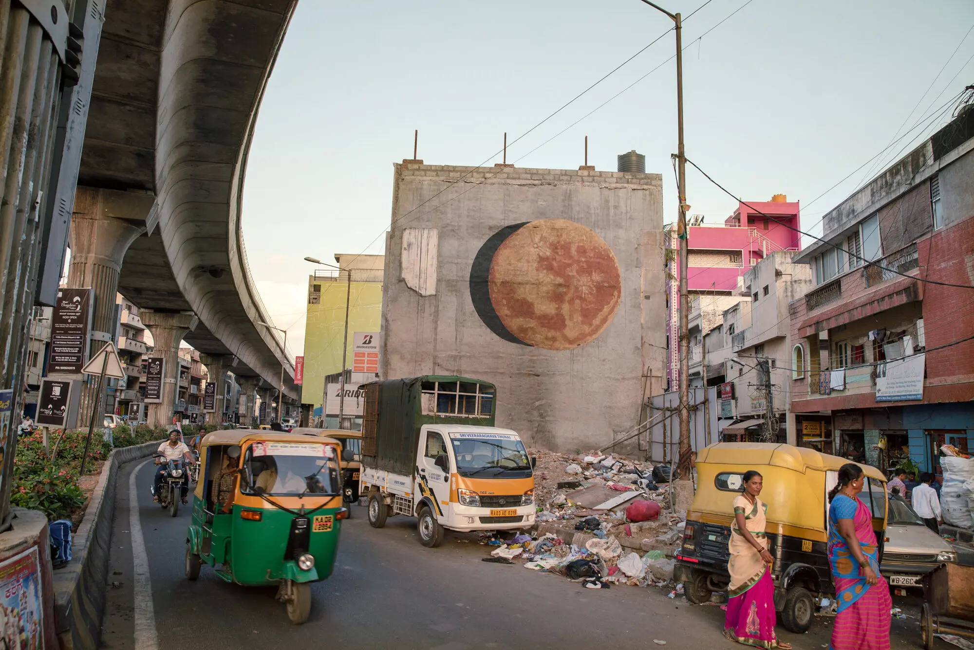 TFTS, a temporary collective of artists from Germany, Italy and India, swent to southern India in spring 2018 and spent three months travelling around the country by bus, painting as they went. They financed the trip with income from wall painting jobs, such as the mural for the new building of the newspaper TAZ in Berlin-Mitte. The money was used to pay paint and materials on the trip, as well for spontaneous fellow travellers or people who joined them in India, regardless of whether they had worked on the commissioned works. A film and a book project about the trip are in the planning.