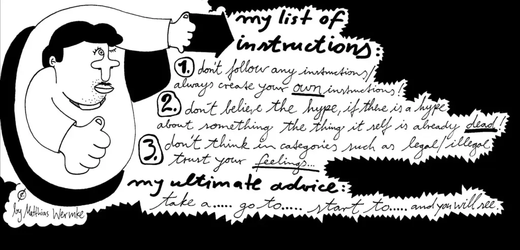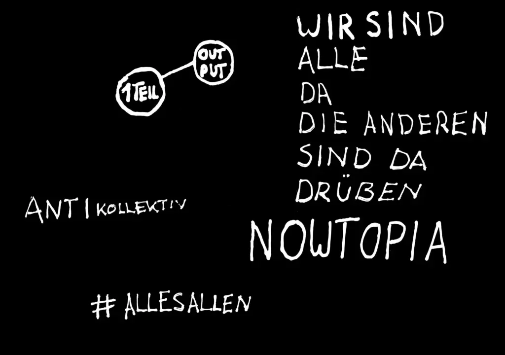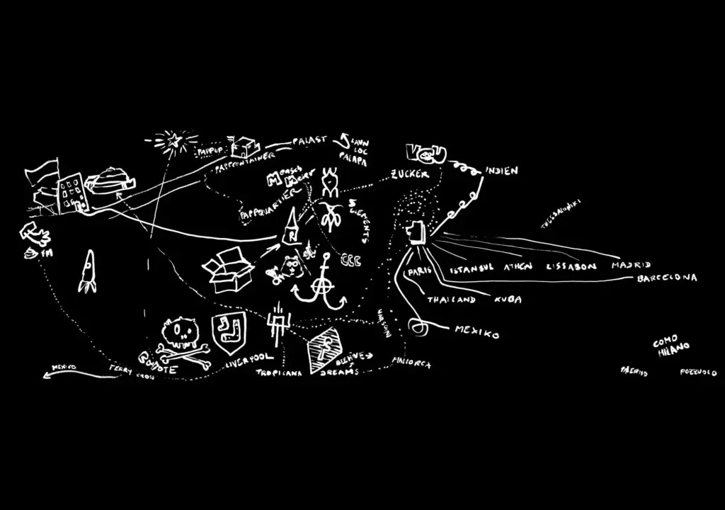 Wir wollten nie ein Label sein. Wir wollten den Fokus auf Autorenschaft zumindest in Frage stellen. Wir haben uns bei einem unserer vielen inhaltlichen Treffen irgendwann als “waberndes Gefährt” definiert oder als eine Art Pilzgeflecht. Unsere Arbeit steckt in vielen Projekten drin, aber in den seltensten Fällen steht der Name daneben. Der Vorteil daran ist, dass es viel mehr Möglichkeiten bietet, andere Leute in einzubinden ohne dass sie sich einer bestimmten Gruppe zugehörig fühlen müssen. Wir hatten deshalb z.B. nie eine eigene Website oder einen eigenen Social-Media-Kanal.