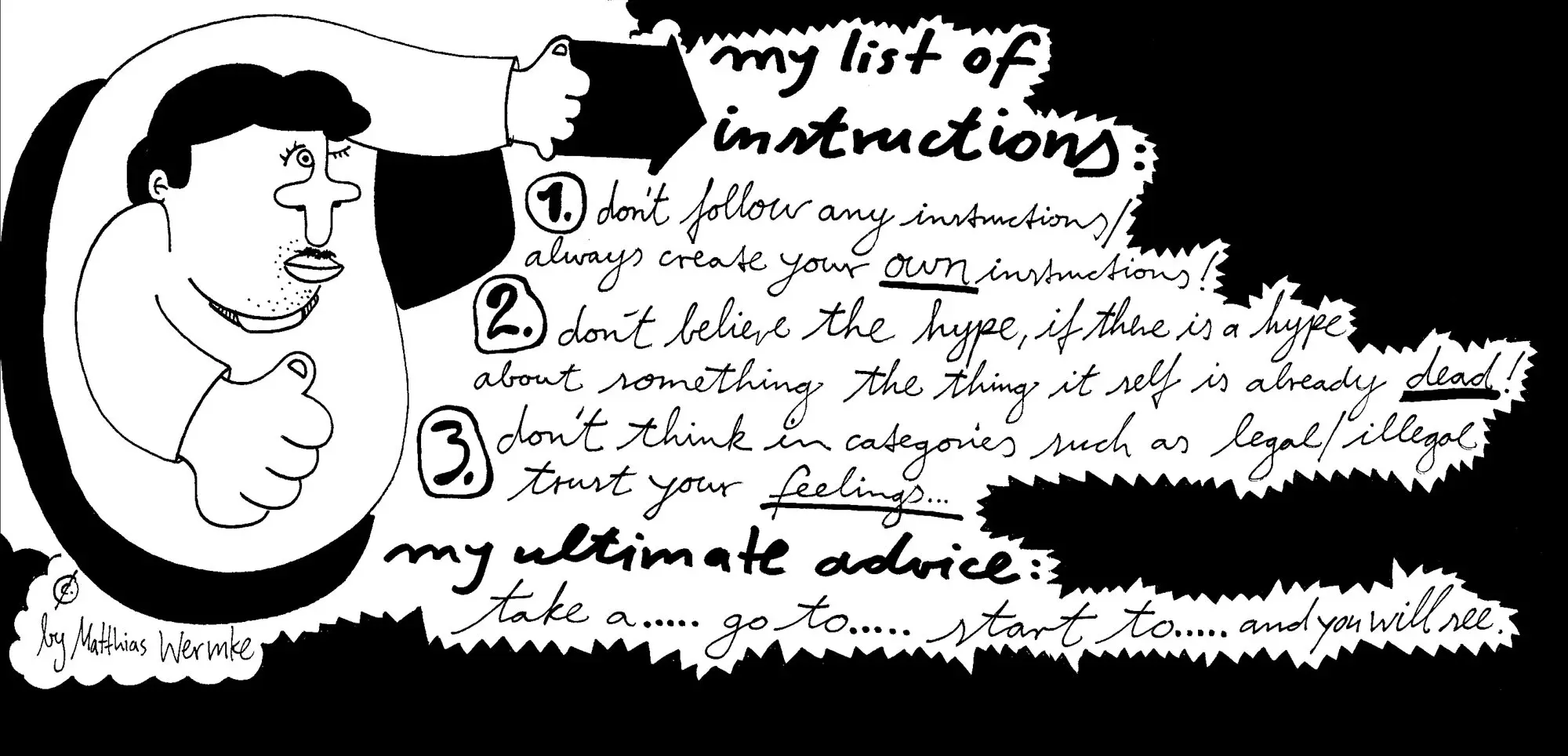 T: In the beginning I always wanted to be there, also in the hope of getting quick spontaneous drawings. But many want to think about it first. Sometimes I got the sheet back after a day, sometimes after weeks, in some cases after months.