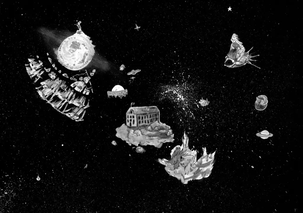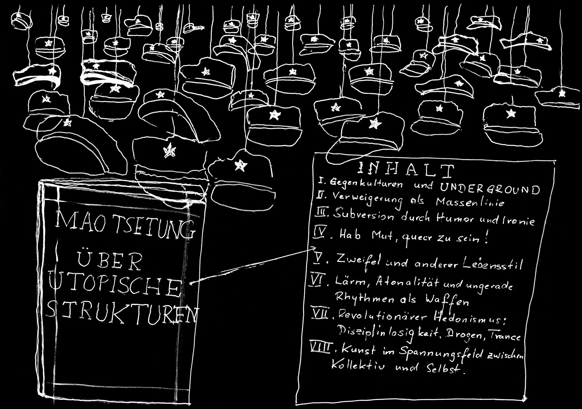 Mit den Mitteln der Kunst eine bessere Welt entwerfen. Zeichnungen von Widerstand gegen diese Wirklichkeit, wie sie jetzt ist – und von Utopien, wie es sein könnte.