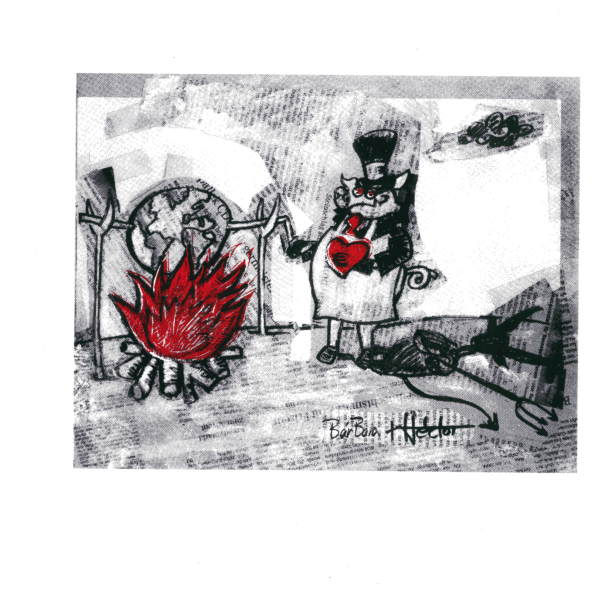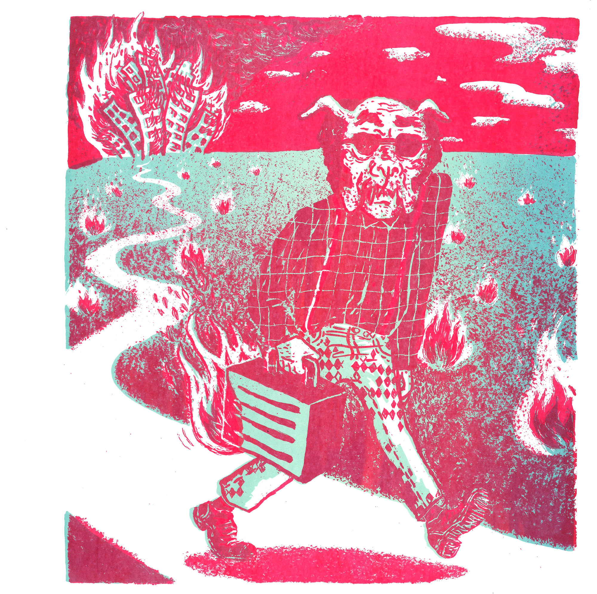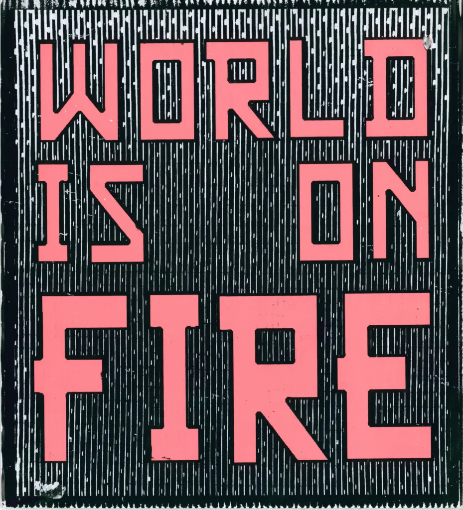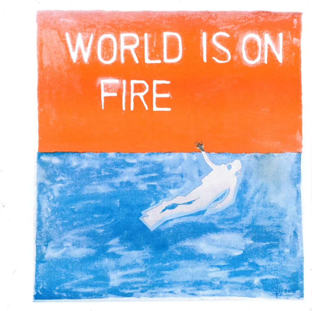 Kollektiv-Magazin mit 62 Siebdrucken von Künstler*innen aus dem Umfeld der Czentrifuga zum Thema »World is on Fire«. Die Seiten wurden individuell in den verschiedenen Werkstätten gedruckt, auf unterschiedlichem Papier und schließlich mit Umschlag als Buch zusammengebunden. Fertiggestellt im Neurotitan Berlin während der »Printnoise«-Ausstellung Mai 2016.